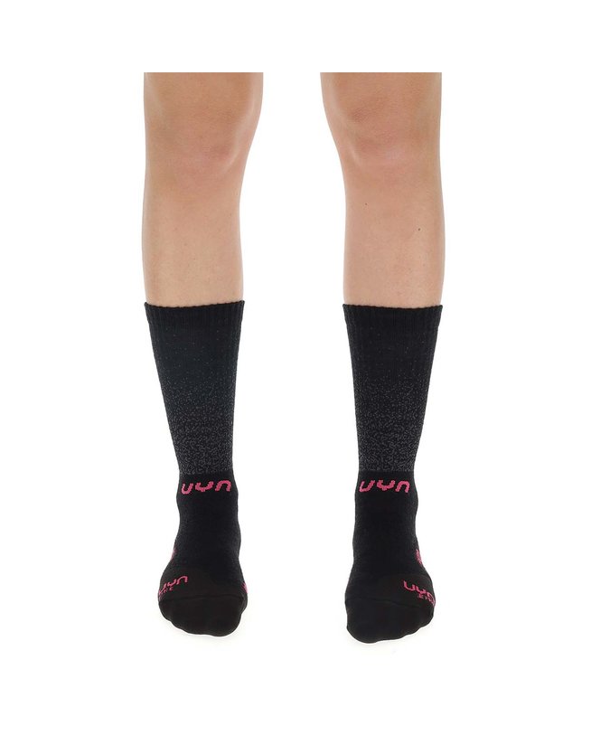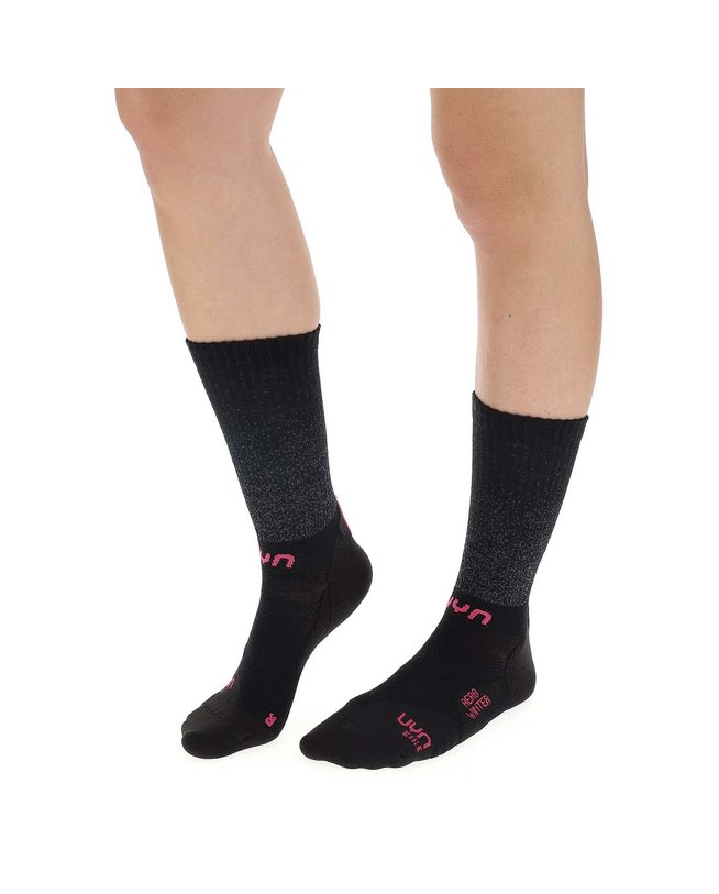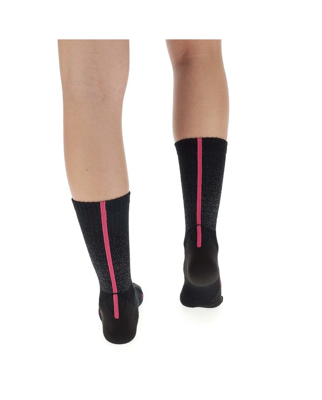 Uyn Aero Winter čarapa koristi iznimna termoregulirajuća svojstva Merino vune kako bi osigurala maksimalnu udobnost tijekom zimskih vožnji. Kako bismo povećali sposobnost upijanja vlage, uveli smo vrhunsku Texlyte Nano pređu u strateškim područjima pete, prstiju i uloška. Sustav Cool Air Flow integriran u unutarnju površinu omogućuje kruženje zraka oko stopala i stvara izolacijski sloj. Aero Winter čarape imaju trodimenzionalnu strukturu stopala koja smanjuje udar zraka i potiče aerodinamičnost. Udobnost i performanse nalaze svoju savršenu sintezu čak iu zimskoj sezoni.