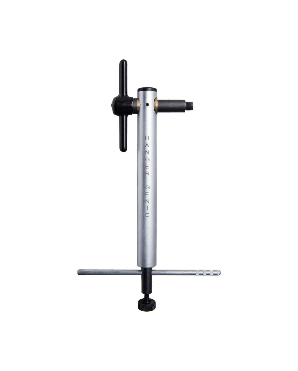 - Hanger Genie je sklopivi precizni alat koji se koristi za poravnavanje okvira stražnjeg mjenjača i održavanje točne promjene stupnjeva prijenosa. Kompatibilan je sa svim veličinama kotača od 20˝ do 29˝ + i pričvršćuje se izravno u vješalice mjenjača. Precizni mjerač može se zaključati na mjestu tako da nećete izgubiti točnost mjerenja kada ga gurate na biciklu u različitim položajima. Zahvaljujući rotirajućem dnu alata, možete lako očistiti okvir dok radite oko bicikla.