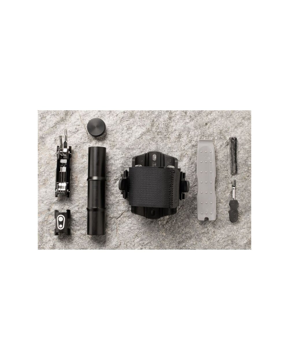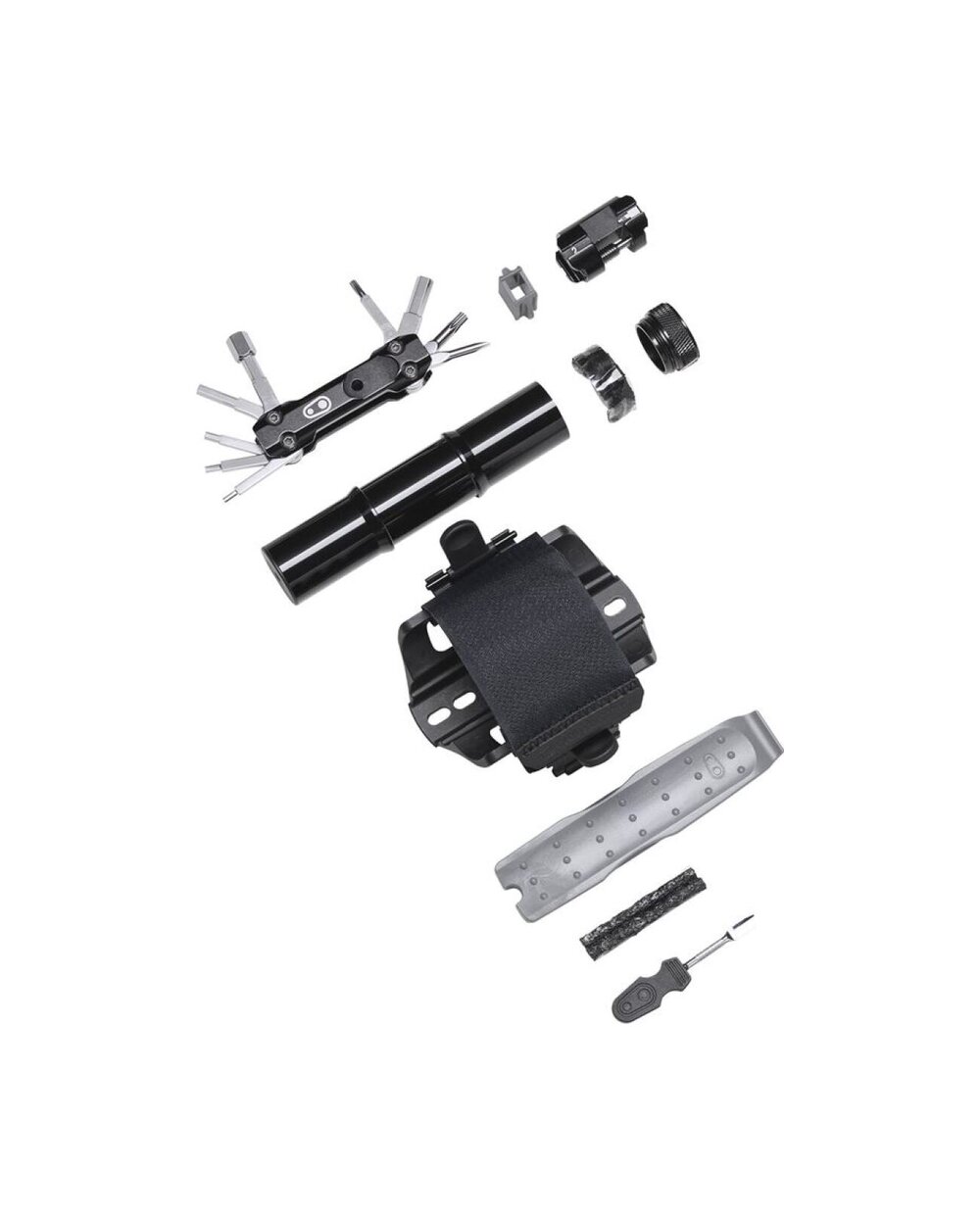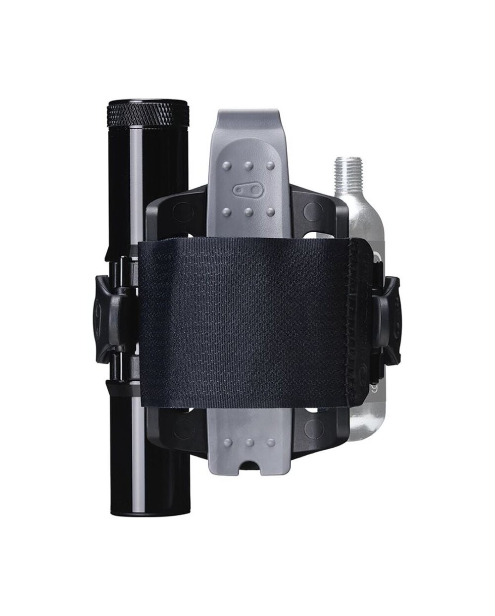 Držač za rezervnu zračnicu ili drugu opremu s čičak trakom. Montaža umjesto košare. Veliki višenamjenski alat našao je mjesto u bočnom spremištu, a na drugu stranu košare moguće je pričvrstiti CO2 bocu ili mini pumpu.