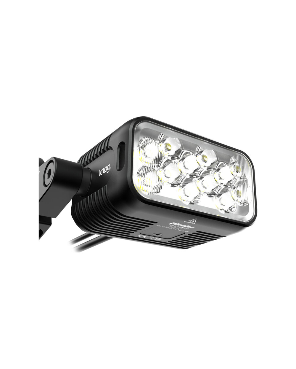 Nova svjetla Blinder E marke Knog napajaju se baterijom za električni bicikl. Sadrže ožičenje koje je potrebno spojiti na odgovarajući konektor određenog proizvođača električnog bicikla. Svjetla su kompatibilna s Bosch, Shimano, Yamaha, Brose i Specialized pogonskim jedinicama. U kompletu je i daljinski upravljač koji se nalazi na upravljaču, a služi za promjenu modova. Glava svjetla je opremljena spojnim kabelom koji završava slobodnim žicama. Spojeni su na kabel koji završava konektorom kompatibilnim s danim motorom. Upravljanje svjetlom je slično klasičnim Blinder PRO svjetlima, držanje gumba uključuje svjetlo, držanje pritisnuto isključuje ga. Pojedinačni modovi se mijenjaju kratkim pritiskom. Dvostruki pritisak mijenja način između svijetljenja i bljeskanja. Ova svjetla Blinder E također se mogu koristiti s vanjskom Knog Blinder X baterijom kapaciteta 10.000 mAh. Izlaz: 6V (5-14V) Svjetlost: 1.800 Lm Težina: 125 g Materijal: Aluminij Montaža: promjer upravljača 31,8 - 35 mm