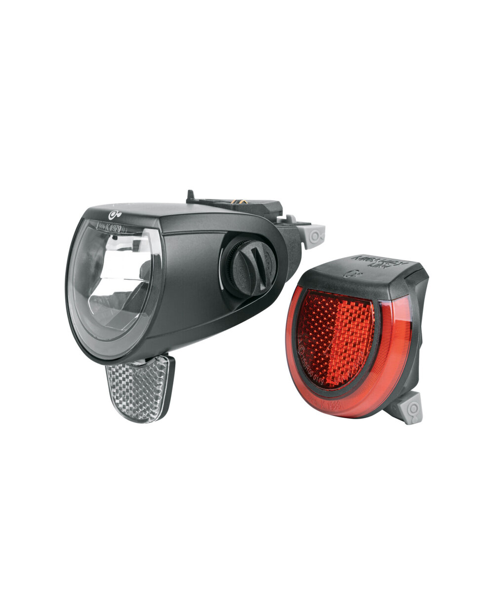 Prednje svjetlo opremljeno je K-reflektorom s funkcijom dnevnih svjetala i dugih svjetala. Svjetlo je podesivo po kutu i nudi snagu od 150 LUX (110 LUX u kratkim svjetlima), što osigurava izvrsnu vidljivost. Stražnje svjetlo opremljeno je svjetlom kočnice za veću sigurnost tijekom vožnje. Osim toga, sustav omogućuje brzo punjenje pametnih telefona preko USB-C priključka snage 12 W. Ovaj sustav rasvjete je predinstaliran isključivo na e-bicikle opremljene MonkeyLink nosačima, što uvelike olakšava njegovu montažu i korištenje.Značajke: