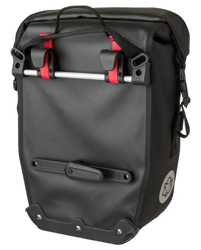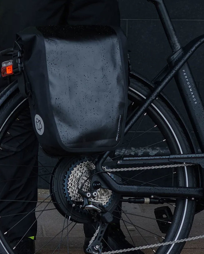 Izrađena od 100% vodootpornog recikliranog poliestera, ova lagana torba za bicikl ima sve što vam je potrebno - i više - za siguran prijevoz vaše prtljage. Pouzdan sustav zatvaranja role i zavareni šavovi, uklonjiva naramenica i unutarnji pretinac s patentnim zatvaračem. Instalacija pomoću KLICKfix šipke i kuke. Dimenzije proizvoda 26 x 43 x 15 cm