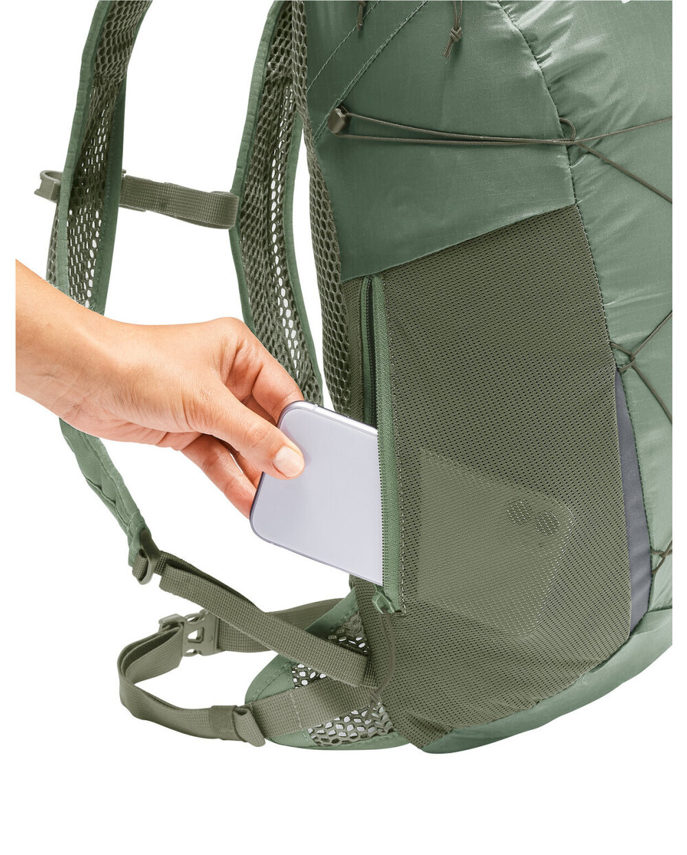 - Prednji i bočni džep s patentnim zatvaračem, prednji objekt, reflektirajući elementi, unos hidratantnog sustava, remen za prsa s kopčom, integrirani kišni kabanica
