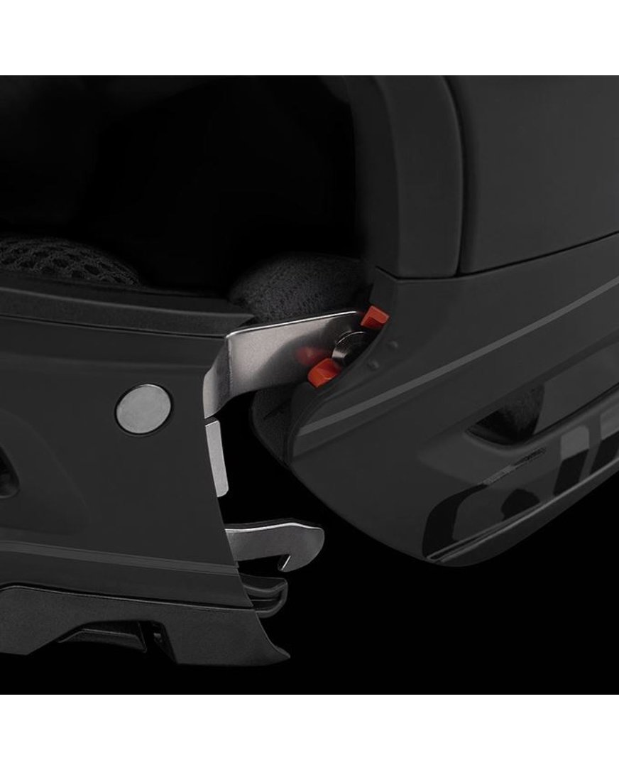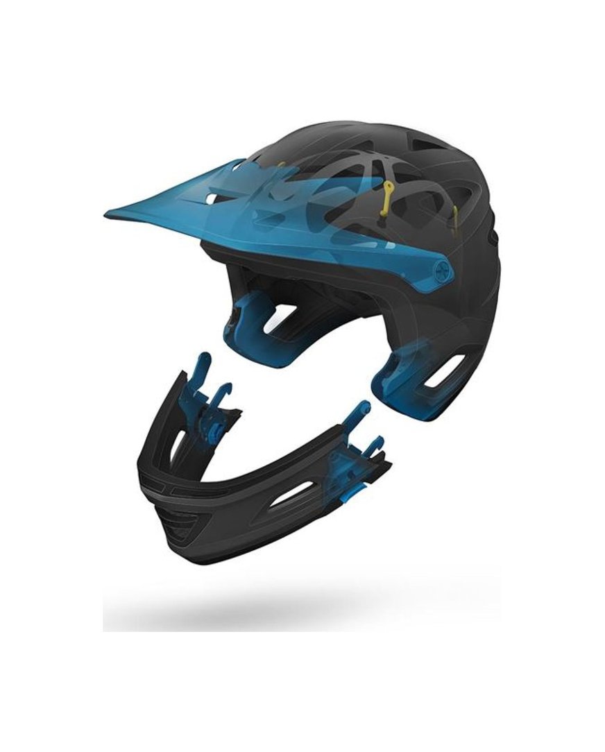 Switchblade MIPS je naš novi integrirani štitnik za bradu s uklonjivim štitnikom za bradu koji zadovoljava ASTM certifikat za skijaški spust. Model Switchblade u potpunosti je optimiziran za korištenje nizbrdo i stoga zadovoljava sve potrebne standarde: CPSC, EN-1078 i ASTM-1952-DH, sa ili bez štitnika za bradu! Mehanizam za otpuštanje štitnika za bradu je jednostavan: pritisnite gumb, podignite ga i izvucite. To će odmah povećati sposobnost kacige da ventilira na putu prema gore. Roc Loc Air DH sustav potpunog stezanja osigurava dobro pristajanje uz glavu.