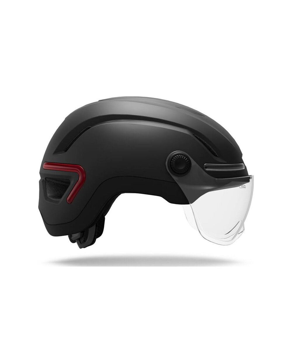 ZNAČAJKE prilagodljiva prozirna naljepnica za zaštitu očiju, mogućnost korištenja vlastitih naočala, reflektirajući elementi, integrirana prednja i stražnja svjetla koja se pretvaraju u pokazivače smjera kada se aktiviraju s daljinskog upravljača na upravljaču, punjenje preko USB-C