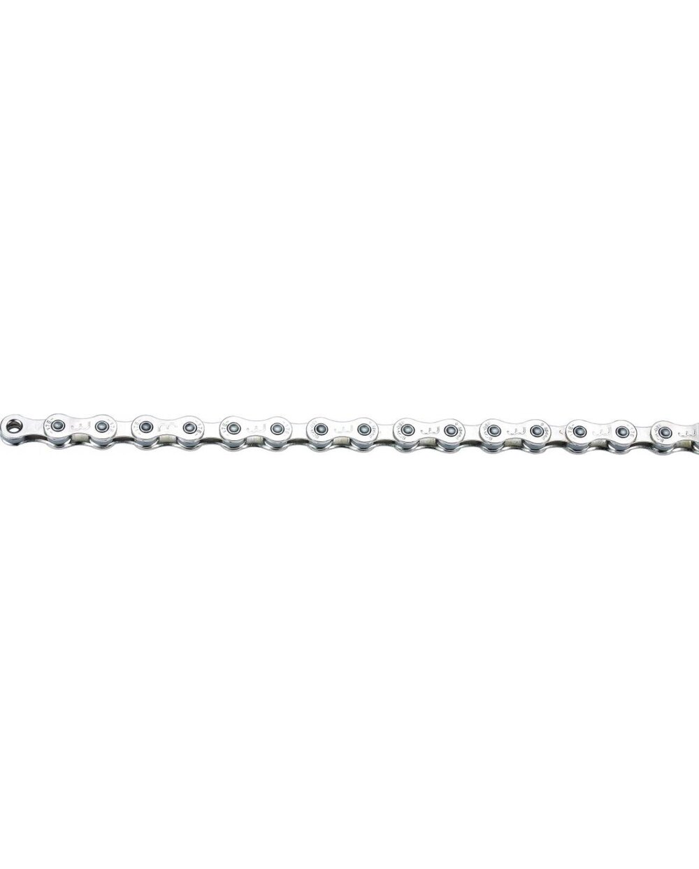 9-stupanjski lanac. Ojačane lančane oči dizajnirane za upotrebu na elektro biciklima. 136 članaka. Površinski završetak: nikl. Težina: 356 grama. Uključujući brze spojnice.