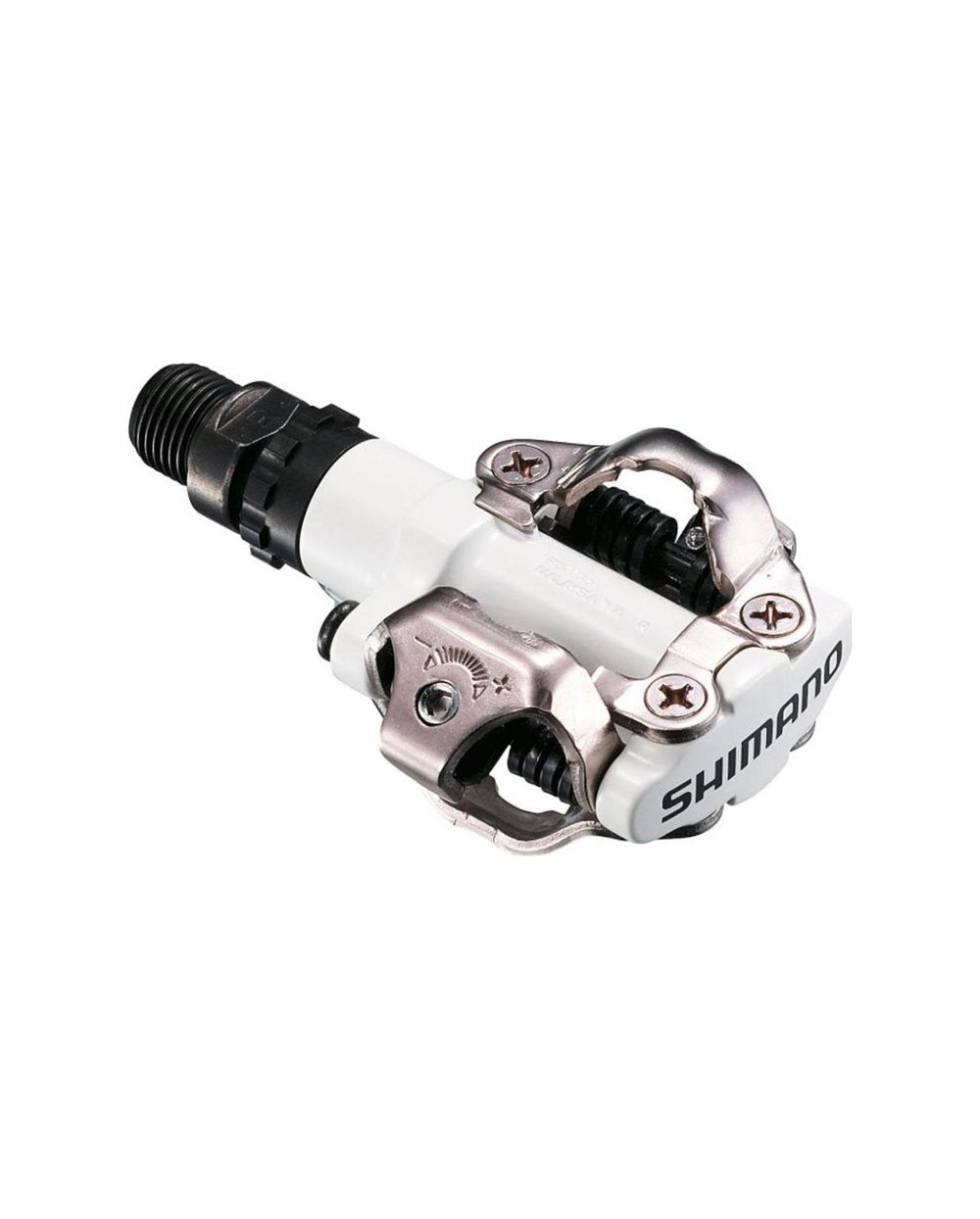 Pedale MTB PDM520 konstrukcija SPD. Dvostrano zaključavanje čepa. Osnovne pedale za MTB početnike. Podesiva sila bravice za stezanje čepa. Dobra svojstva čišćenja pedale na blatnom terenu. Jednostavna konstrukcija osovine za lako servisiranje od krom-molibden čelika. Isporučuje se zajedno s graničnicima SM-SH51, za jednostrano otpuštanje stezanja. Tip: MTB, Ukupna težina paketa: 380g, Upotreba: XC/CX, dvostrani, SPD, bijeli, sa SM-SH51 graničnicima, Materijal: tijelo pedale (aluminij), osovina (krom+čelik)