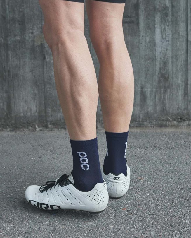 Essential Road Light Sock napravljena je s mrežicom preko rista za prozračnost i ventilaciju, dok rebrasta manšeta osigurava sigurno pristajanje. Ravni šav preko nožnog prsta dizajniran je za veću udobnost, a manšeta ima Poc logo.