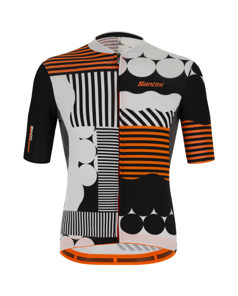 Santini Delta Optic je super prozračni ljetni dres izrađen od Power Stretch materijala tvrtke Polartec. Tkanina je opremljena tehnologijom rastezanja u 4 smjera koja omogućuje izvrsno pristajanje i slobodu kretanja. Stražnja strana izrađena je od Delta materijala za brzo uklanjanje znoja s tijela, što jamči brzo sušenje i izvrsnu prozračnost. Model je lagan, dizajniran posebno za treninge i utrke i ima uski kroj s rukavima neograničenog kroja koji grle mišiće, a da ih ne ograničavaju.