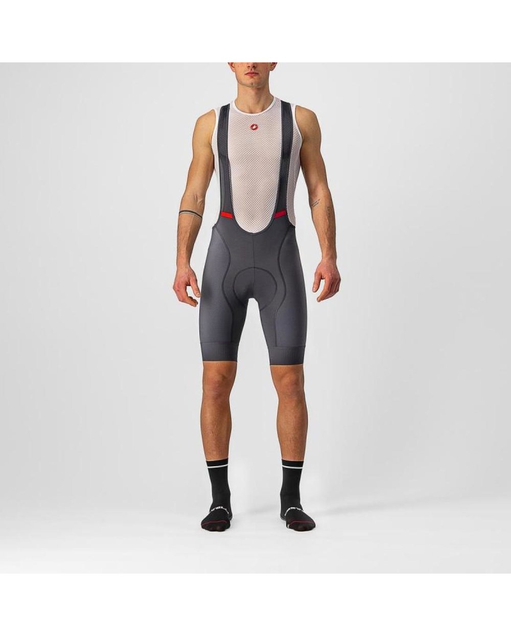 Stražnja ploča 74% poliamid 26% elastan Uzbuđenje utrke Izradili smo ove hlače kako bi uključile što više tehnologije iz naših vrhunskih profesionalnih proizvoda, ali zadržale pristupačniju cijenu. I premda se s lakoćom mogu nositi s utrkama vikendom, također su izvrsni za ugodan nastup, čak i bez startnog broja. Teksturirani Vortex bočni dijelovi i Giro⁴ završni rubovi, koji dolaze izravno iz naših gornjih hlača Free Aero Race 4, i umetak Kiss Air², koji pruža udobnost kao i naša gornja podstava, zajedno predstavljaju vrhunsku vrijednost ovog proizvoda. A nematerijalni dio koji ćete vjerojatno najviše cijeniti je naš talent za savršeno rezanje, zahvaljujući timu inženjera CASTELLI.
