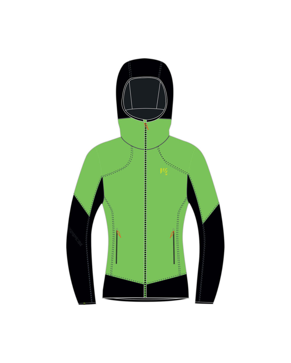• na prednjem i gornjem dijelu rukava prozračan i vjetrootporan K-Dry materijal s vodoodbojnim DWR tretmanom i Polartec® Alpha® sintetička izolacija 50g za izvrsnu toplinu i prozračnost