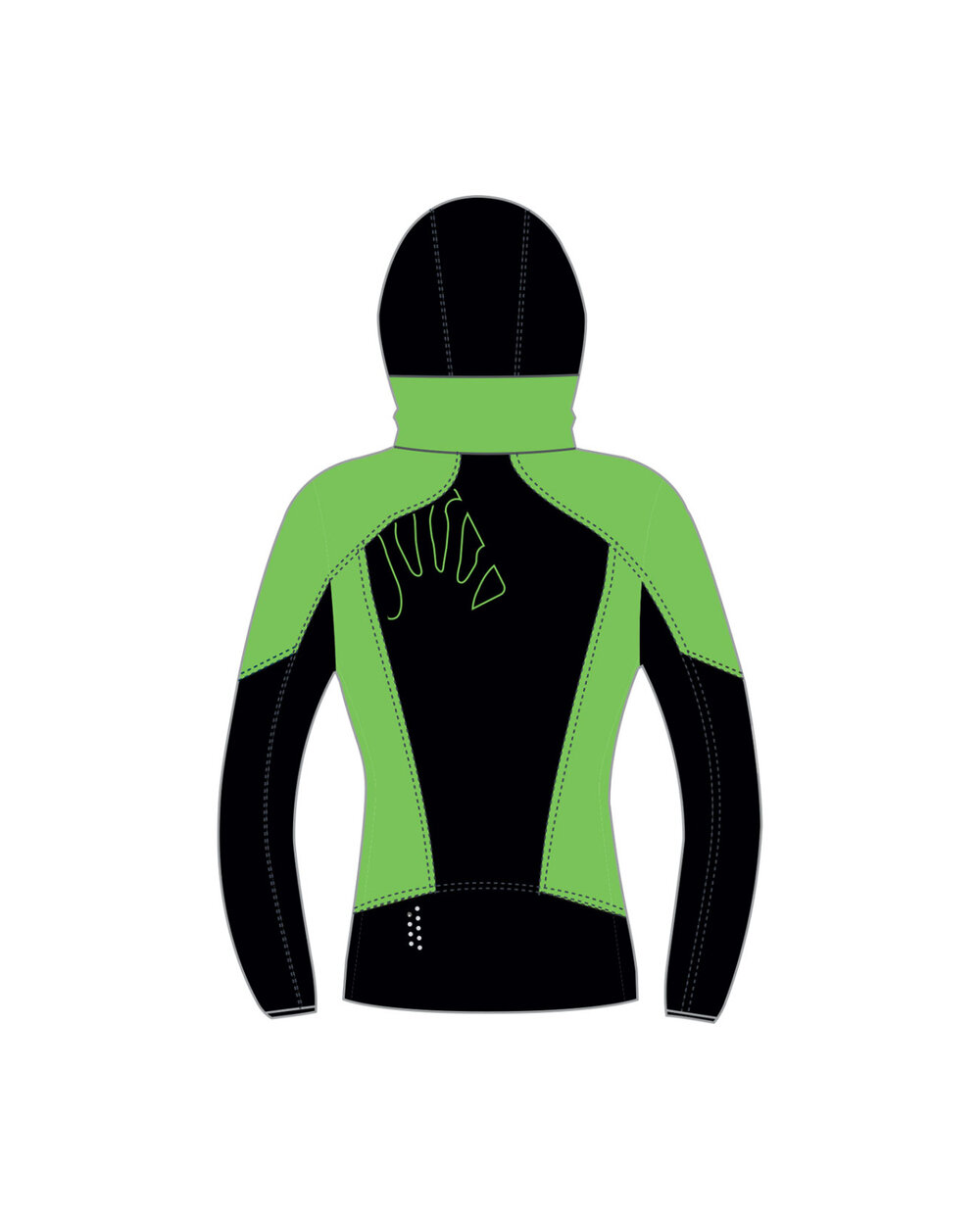 • u donjem dijelu jakne, donjem dijelu rukava, na leđima i kapuljači izuzetno prozračan materijal Sensitive Plus 117g