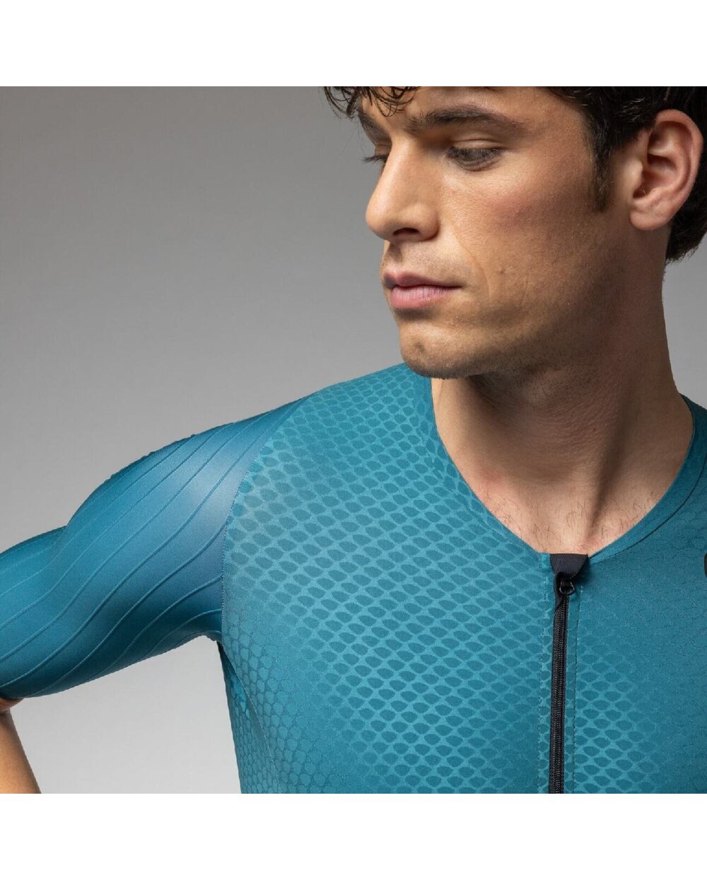 Rukavi s raw-cut krajevima od 3D strukturirane tkanine s kanalima koji potiču glatko kretanje i optimalan protok zraka. Dio hlača s minimalnim šavovima osigurava učinkovitu kompresiju, stabilnost i pouzdanu podršku mišićima tijekom cijele utrke.