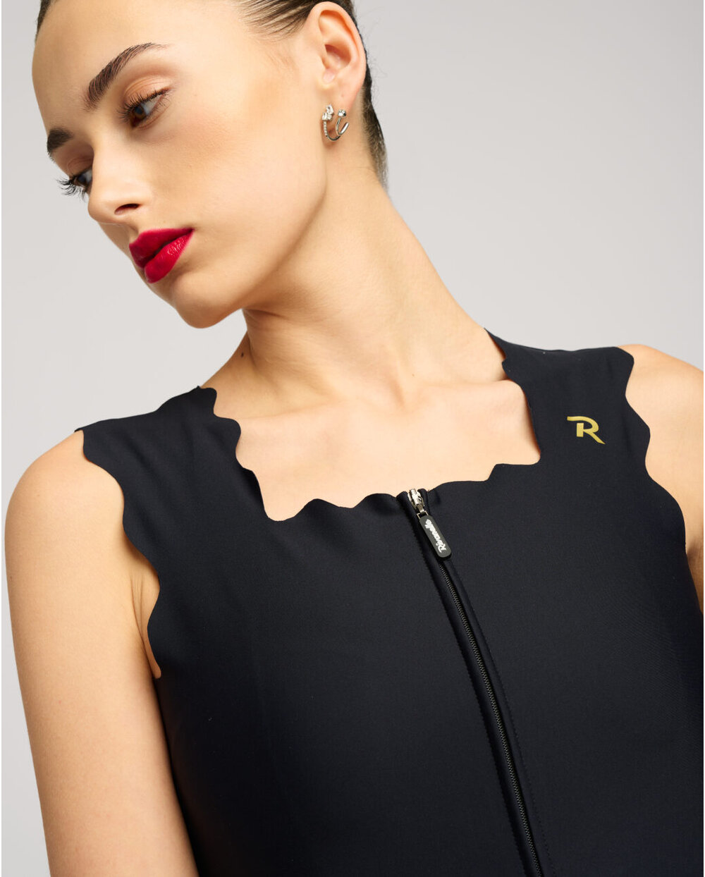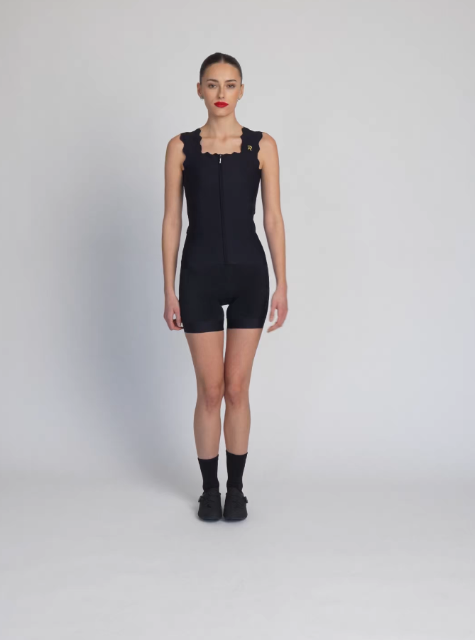 Jeste li ga već vidjeli? Stigao je novi trend - a brend Rivanelle mu je potpuno podlegao! Jednostavno nismo mogli odoljeti ovoj završnoj obradi. Biciklistički dres bez rukava sa savršenim zaobljenim porubom, koji donosi puni glam i biciklističkoj odjeći. Deblje valovite naramenice i četvrtasti izrez ravnaju proporcije ramena i bilo koji dekolte. Ne nedostaje mu opreme koja se očekuje od kvalitetnog dresa. Potpuni prednji patentni zatvarač sa zaštitnim poklopcem oko vrata. Trostruki džep sa sigurnosnim džepom na patentni zatvarač. Bešavni rub s protukliznim printom na stražnjoj strani dresa.
