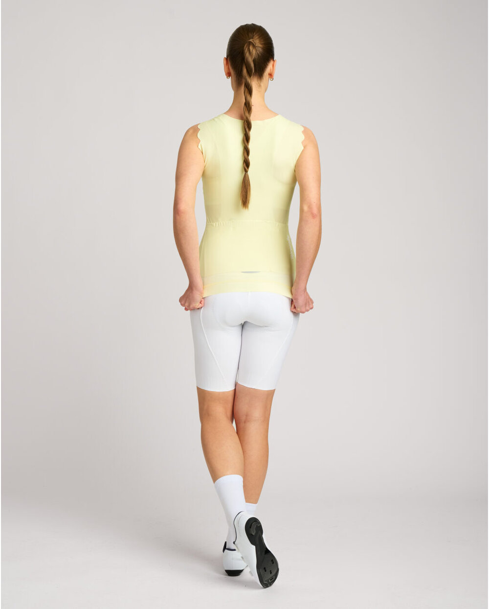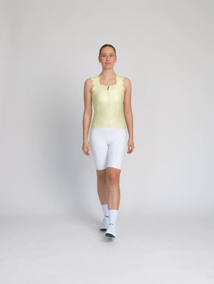 Jeste li ga već vidjeli? Stigao je novi trend - a brend Rivanelle mu je potpuno podlegao! Jednostavno nismo mogli odoljeti ovoj završnoj obradi. Biciklistički dres bez rukava sa savršenim zaobljenim porubom, koji donosi puni glam i biciklističkoj odjeći. Deblje valovite naramenice i četvrtasti izrez ravnaju proporcije ramena i bilo koji dekolte. Ne nedostaje mu opreme koja se očekuje od kvalitetnog dresa. Potpuni prednji patentni zatvarač sa zaštitnim poklopcem oko vrata. Trostruki džep sa sigurnosnim džepom na patentni zatvarač. Bešavni rub s protukliznim printom na stražnjoj strani dresa.
