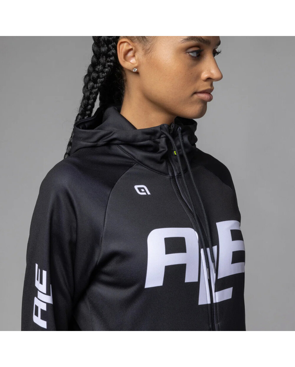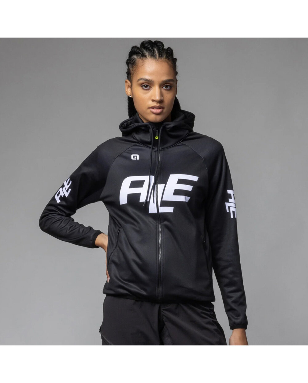 Ženska majica s patentnim zatvaračem s kapuljačom i ALE LOGO je svestran komad koji možete koristiti u mnogim prilikama - od opuštanja preko treninga do svakodnevnog nošenja. Izrađen je od mekanog materijala Soft Fleece koji pruža ugodnu toplinu i udobnost. Prednji dio ukrašen je prepoznatljivim printom loga, koji trenirci daje moderan sportski izgled.