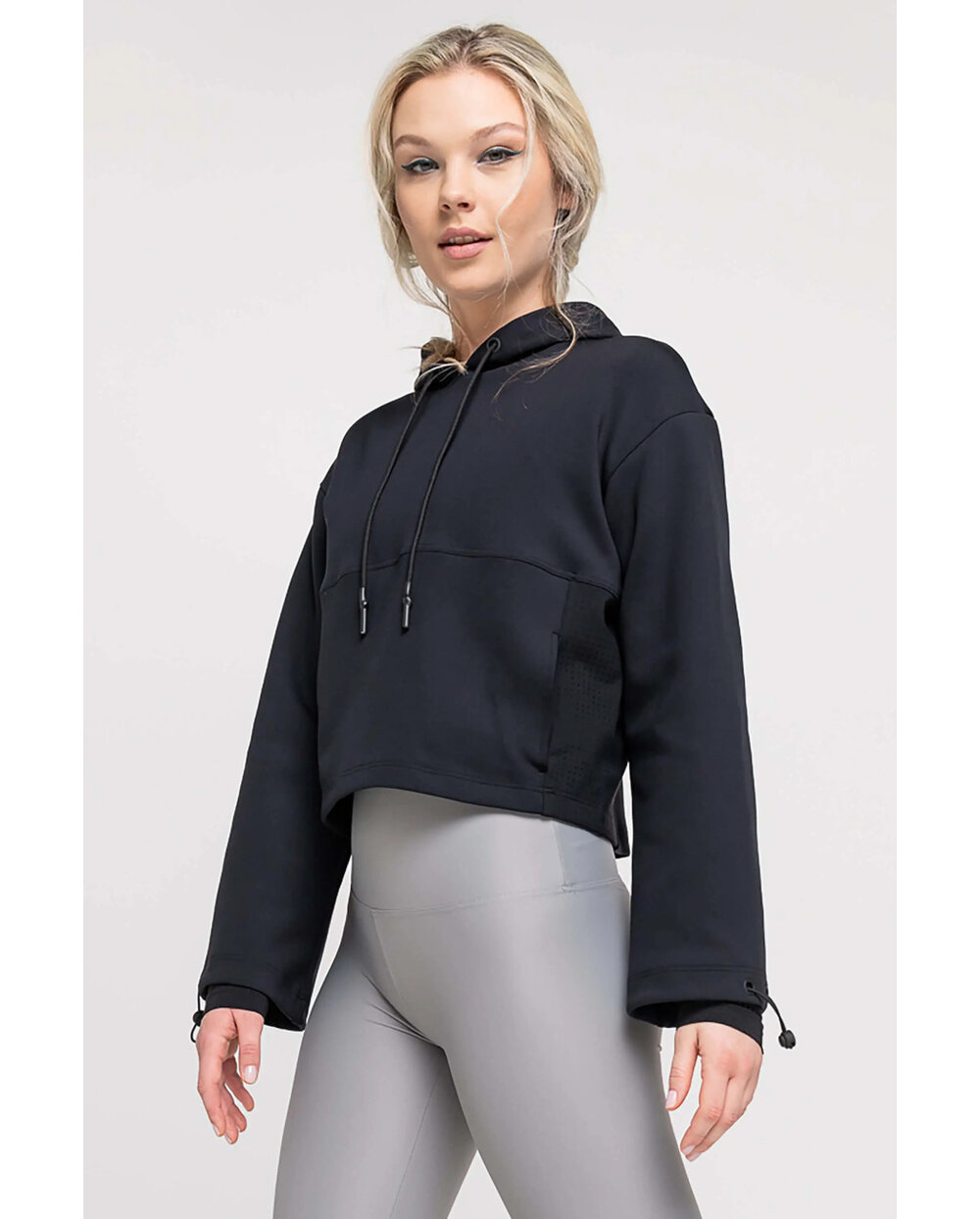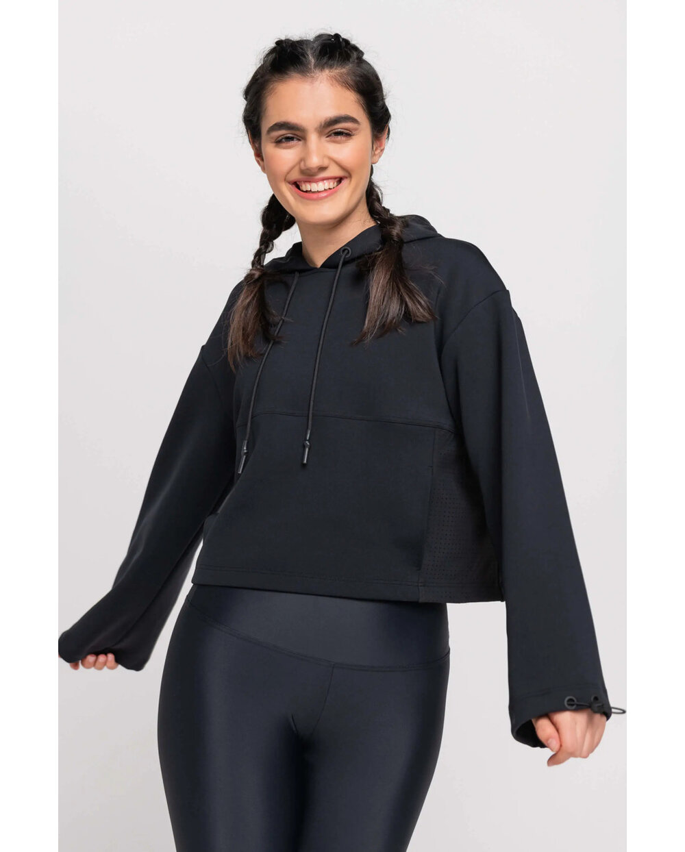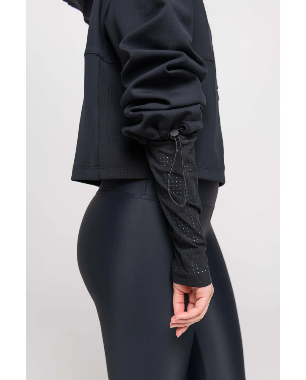 Možete pronaći rupičasti materijal na rukavima, stranama i kapuljači. Zahvaljujući modernom dizajnu u kombinaciji sa scuba materijalom, stvoren je spektakularan komad za svaki trendi ormar.