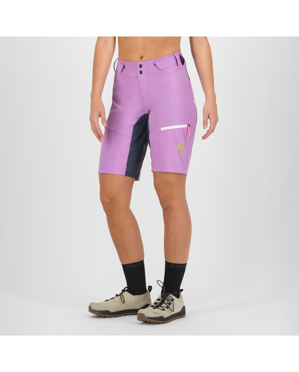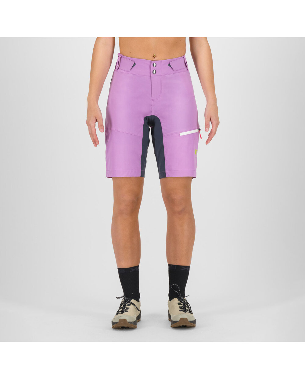 Ženske MTB kratke hlačeVal Viola izrađene su od laganih, hladnih, izdržljivih materijala koji imaju DWR završni sloj koji odbija vodu i prljavštinu. Nemaju uklonjive unutarnje hlačice ili biciklistički jastučić. Za savršeno pristajanje, kratke hlače su opremljene čičak trakama. Kratke hlače za brdski biciklizam, na otvorenom, planinarenje i slobodno vrijeme.