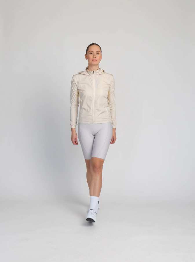 Super lagan, otporan na vjetar i djelomično vodootporni vjetrovi s kapuljačom i odvojivim rukavima. Izrađena je od prozračnog materijala i ima mrežne bočne ploče za povećano rasipanje topline i ventilaciju kroz cijelu širinu gornjeg dijela leđa.
