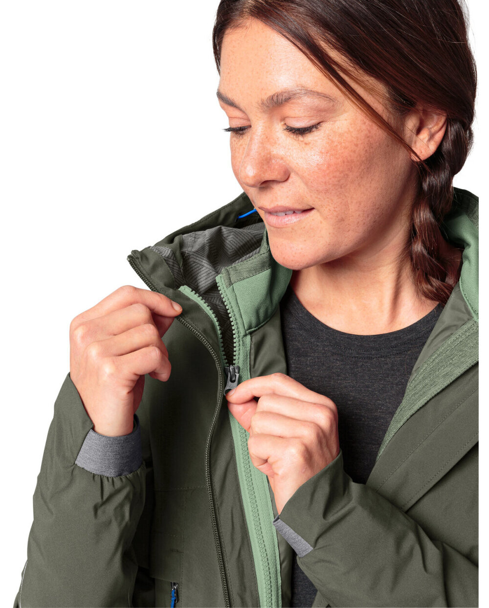 - Djelomično elastične manžete s rukavima, ventilacijski nabor, zglobni rukavi, prednji džepovi