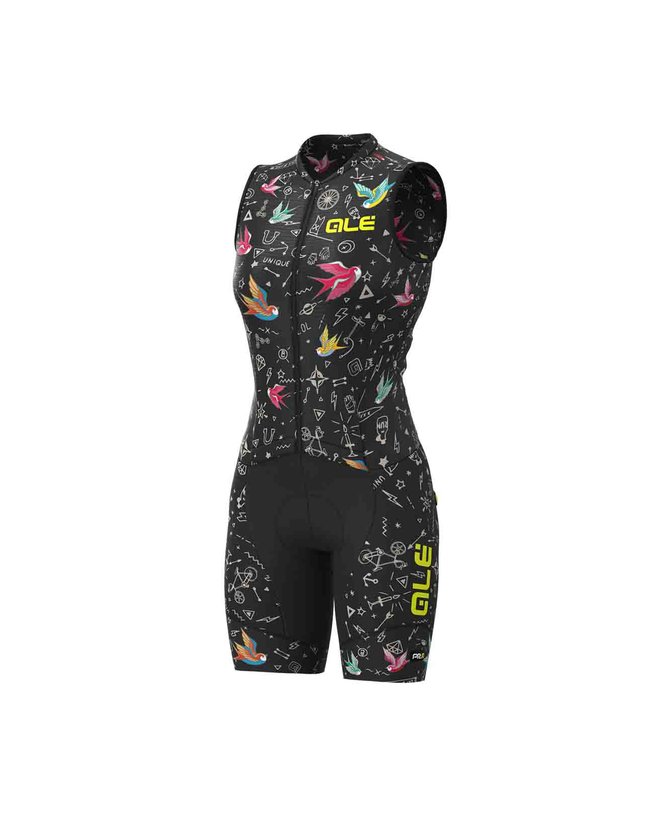 Jedinstven, lagan i aerodinamičan kombinezon. Kombinira karakteristike tradicionalnog dresa i kratkih hlača te aerodinamičke performanse kombinezona za kronometar. Brzo sušenje i maksimalna prozračnost s prednje strane zahvaljujući Micro Aero materijalu. Donji dio inspiriran je kratkim hlačama R-EV1 izrađenim od Zaffiro Power Lycra® materijala, koji nudi pokrivenost, kompresiju mišića i otpornost na abraziju. Ženska biciklistička podstava W4HF izrađena od elastična mikrofibra, posebno oblikovana za žene, s podstavom strateški postavljenom na dodirnim točkama. U perinealnom i ishijalnom području, podstava od 90 kg m3 je kalibrirana i prozračna u svim pokrivenim područjima kako bi se osigurala maksimalna zaštita od udaraca i udaraca na cesti. Bočna krila su fleksibilna i prate pokrete ženskog tijela prilikom pedaliranja te se prilagođavaju anatomiji biciklista kako bi pružila najvišu razinu udobnosti.