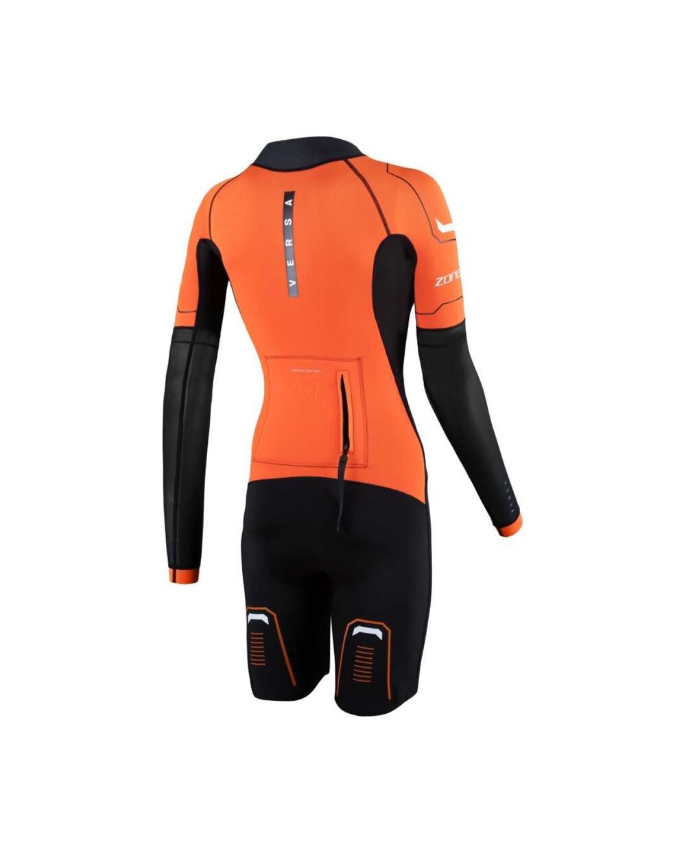 Zone3 Women's Versa Swimrun je svestrano žensko ronilačko odijelo dizajnirano posebno za disciplinu swimrun, gdje se plivanje i trčanje glatko izmjenjuju. Odijelo nudi idealnu ravnotežu između fleksibilnosti, toplinske udobnosti i izdržljivosti, što ga čini prikladnim i za početnike i za napredne sportaše. Kombinacija Yulex® prirodne gume i Speedflo neoprena osigurava dobru fleksibilnost, ekološkiji pristup proizvodnji, a istovremeno smanjen otpor vode za učinkovitije plivanje. Prednji zatvarač omogućuje brzo oblačenje i jednostavnu regulaciju temperature tijekom trčanja ili prijelaza, što je ključno u trčanju. Kraći kroj rukava zajedno s mogućnošću nadopune ulošcima koji se skidaju omogućuje prilagodbu odijela trenutnim uvjetima. Praktičan element su integrirani džepovi, koji pružaju dovoljno prostora za pohranu energetskih gelova ili sitne obvezne opreme. Jaki narančasti detalji povećavaju vidljivost u otvorenim vodama i doprinose sigurnosti.